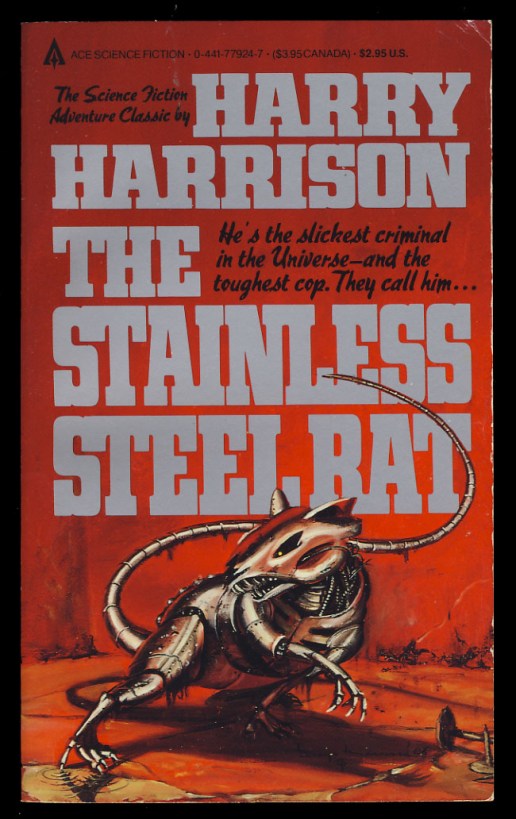 The titular Stainless Steel Rat is James DiGriz, an extremely talented criminal who gets pressed into a law enforcement corp. From there what I like to call ‘standard adventure’ ensues, with a little bit of intrigue, a little bit of romance, and a little bit of adventure. From that checklist I just made, nothing is done particularly well, which I can say easily just like I point out the lack of nutrition in McDonald’s. But just like I would retort to someone who brings up McDonald’s lack of nutrition, I would like to remind people that I wasn’t reading for that scope.