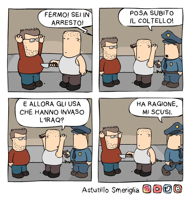 That is the title of a collection / graphic novel by comic book author, animator, and screenplay and theater writer Astutillo Smeriglia, who is a silver lining that I found from twitter from my last stint there. He was a voice of reason during the beginning of the war in Ukraine, when many Italians suddenly found themselves siding with Vladimir Putin in the hopes of keeping their bills lower. I have to admit, I fell in love with some of his retorts, as they were direct replies to some of the dogshit arguments I had been hearing: